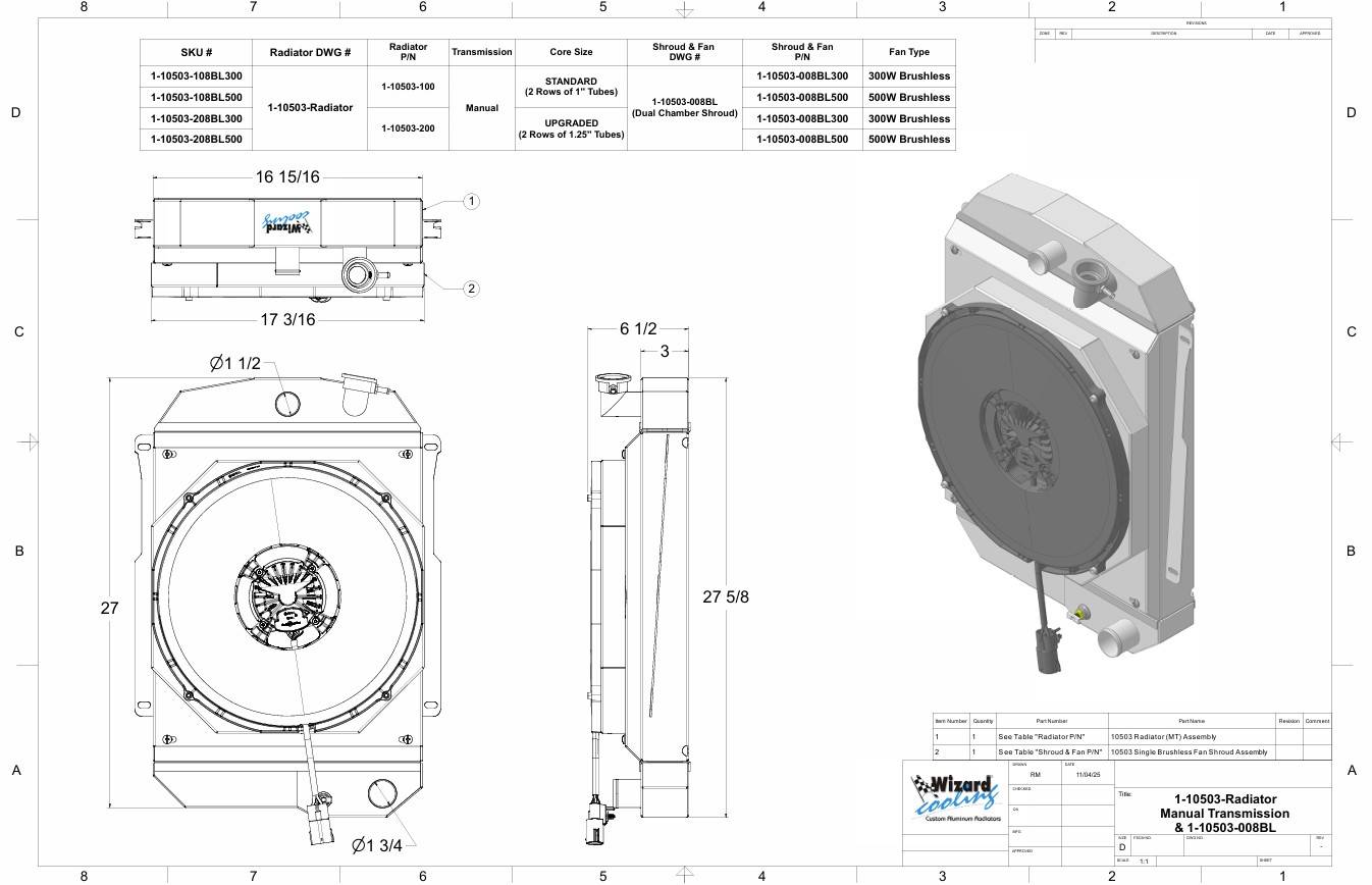 Chevy V8, Manual Transmission, 2.75” Core, Shroud & Brushless Fan(s)