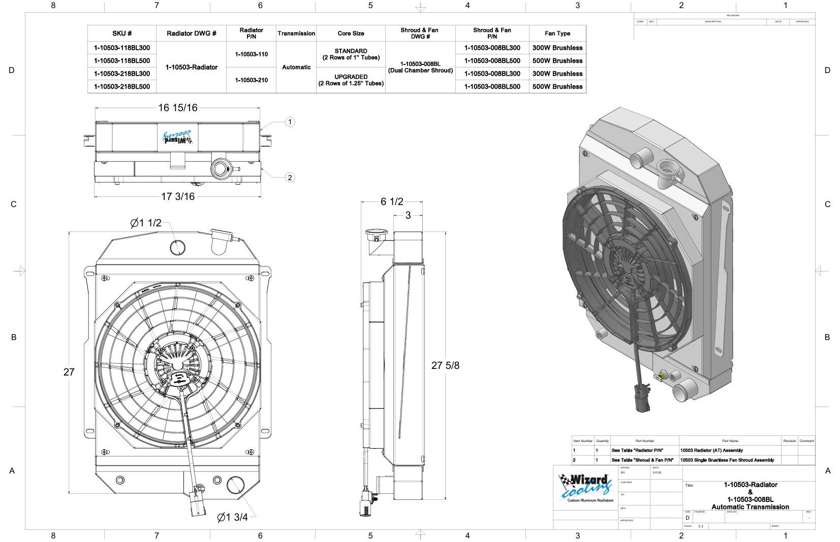 Chevy V8, Automatic Transmission, 2.75” Core, Shroud & Brushless Fan(s)