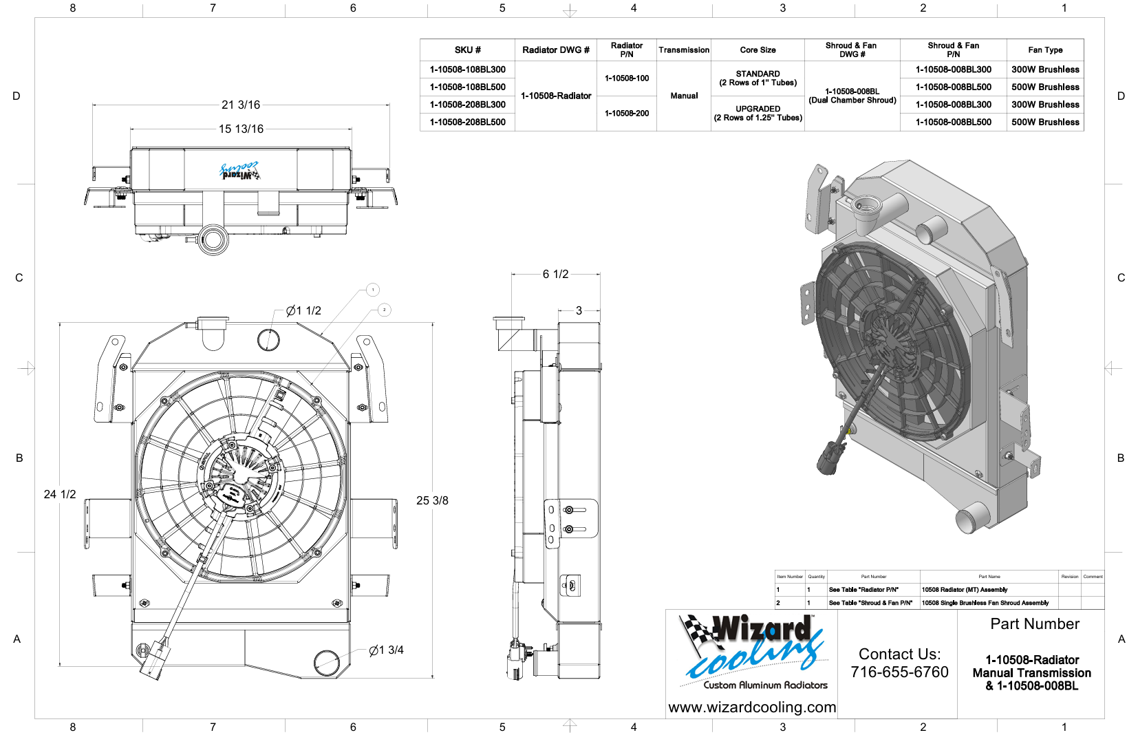 Chevy V8, Manual Transmission, 2.75” Core, Shroud & Brushless Fan(s)