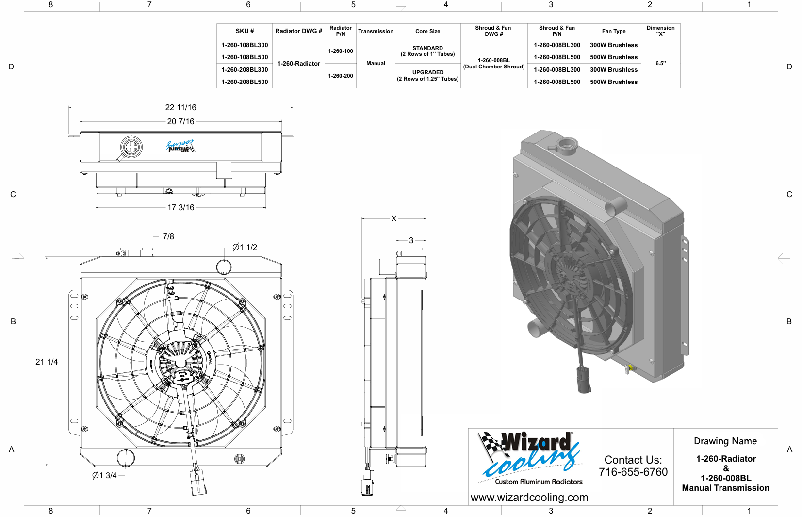 S/B, Manual Transmission, 2.75” Core, Shroud & Brushless Fan(s)