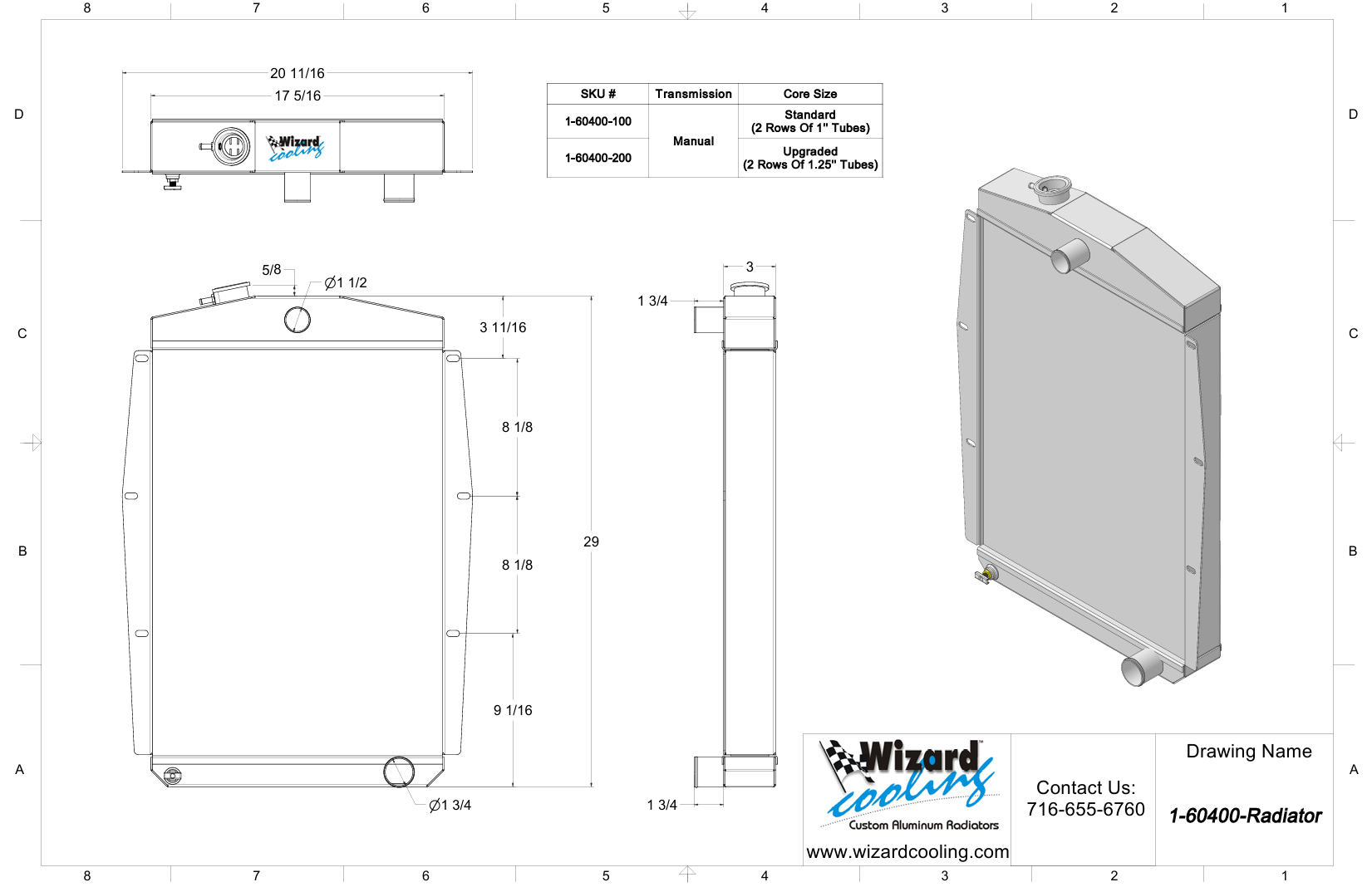 , Manual Transmission, 2.75” Core,