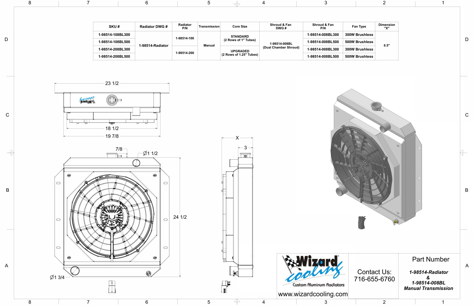 Manual Transmission, 2.75” Core, Shroud & Brushless Fan(s), 300 watt