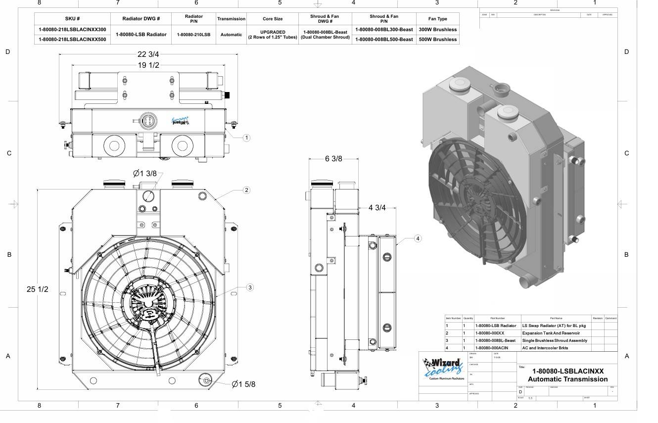 LS Swap, LS (Supercharged), Automatic Transmission, 2.25” Core, Shroud & Brushless Fan(s), AC Condenser Tank(s)