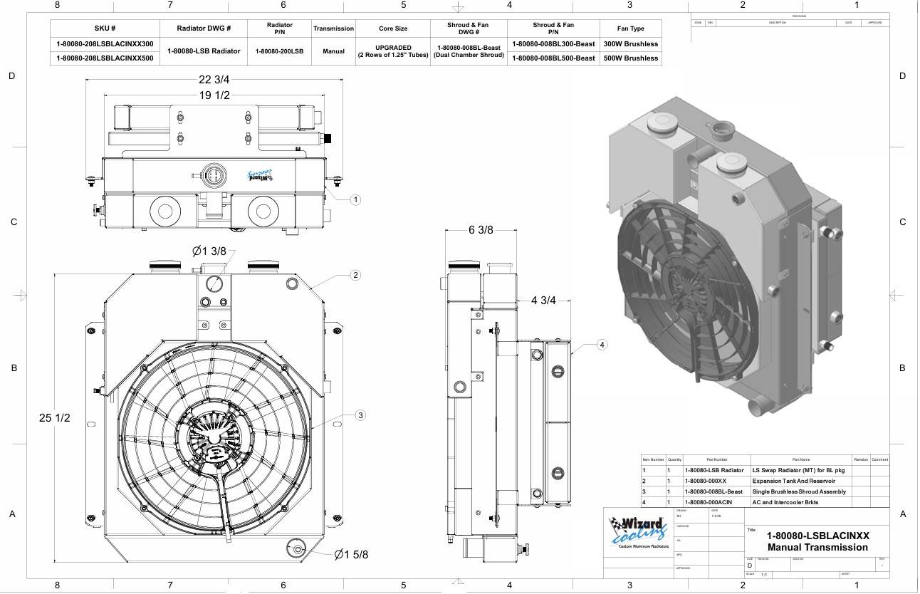 LS Swap, LS (Supercharged), Manual Transmission, 2.75” Core, Shroud & Brushless Fan(s), AC Condenser Tank(s)