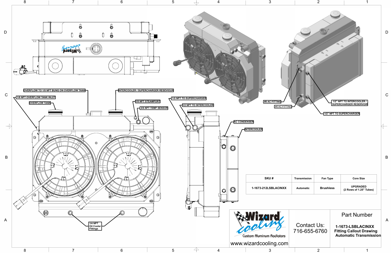 LS Swap, LS (Supercharged), Passenger Side Inlet, Automatic Transmission, 2.75” Core, Shroud & Brushless Fan(s), AC Condenser, Intercooler, Tank(s)
