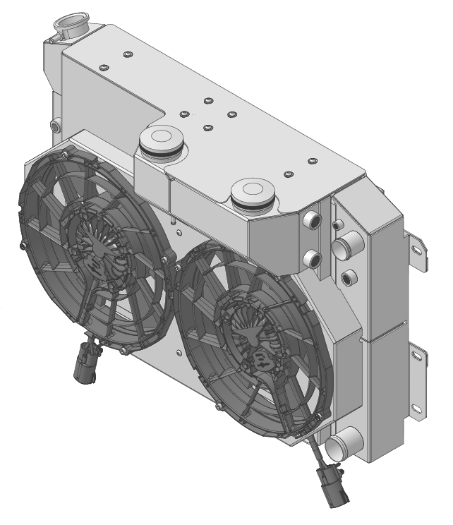 - High performance radiator with 2 rows of 1.25" tubes, with a core thickness of 2.75"