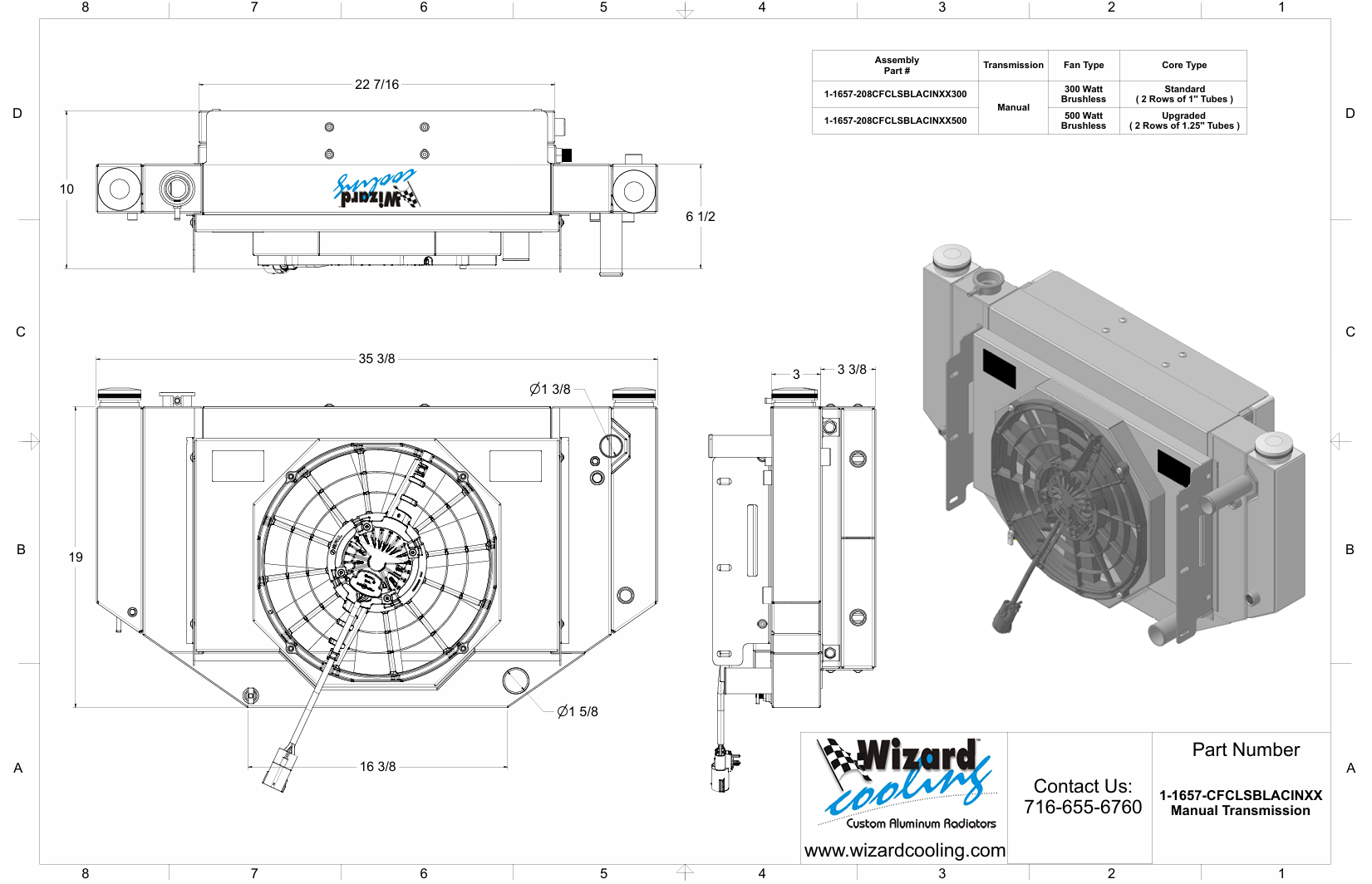 LS Swap, LS (Supercharged), V8 Core Support (Cross Flow Conversion Radiator), Manual Transmission, 2.75” Core, Shroud & Brushless Fan(s), AC Condenser Tank(s)
