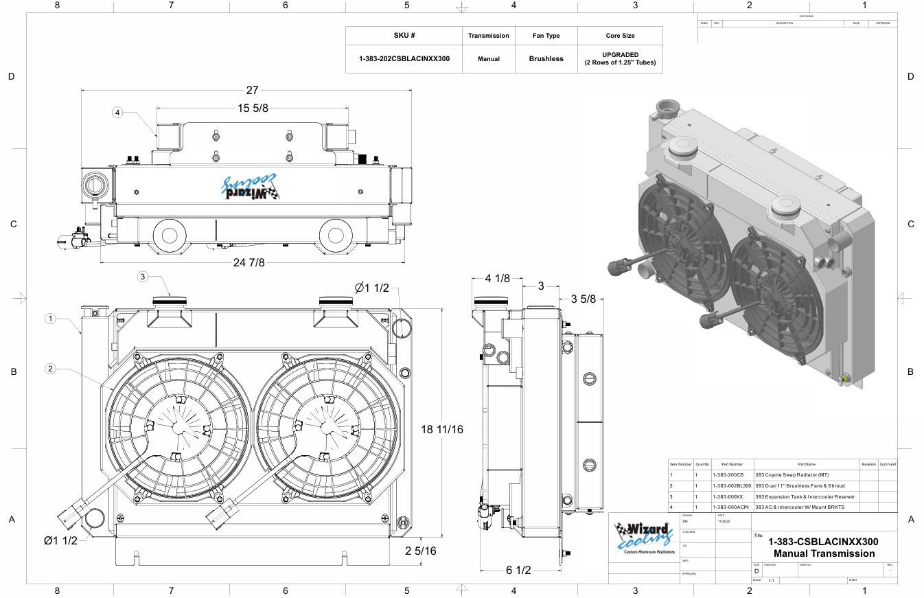 Coyote Swap, Manual Transmission, 2.75” Core, Shroud & Brushless Fan(s), AC Condenser Tank(s)