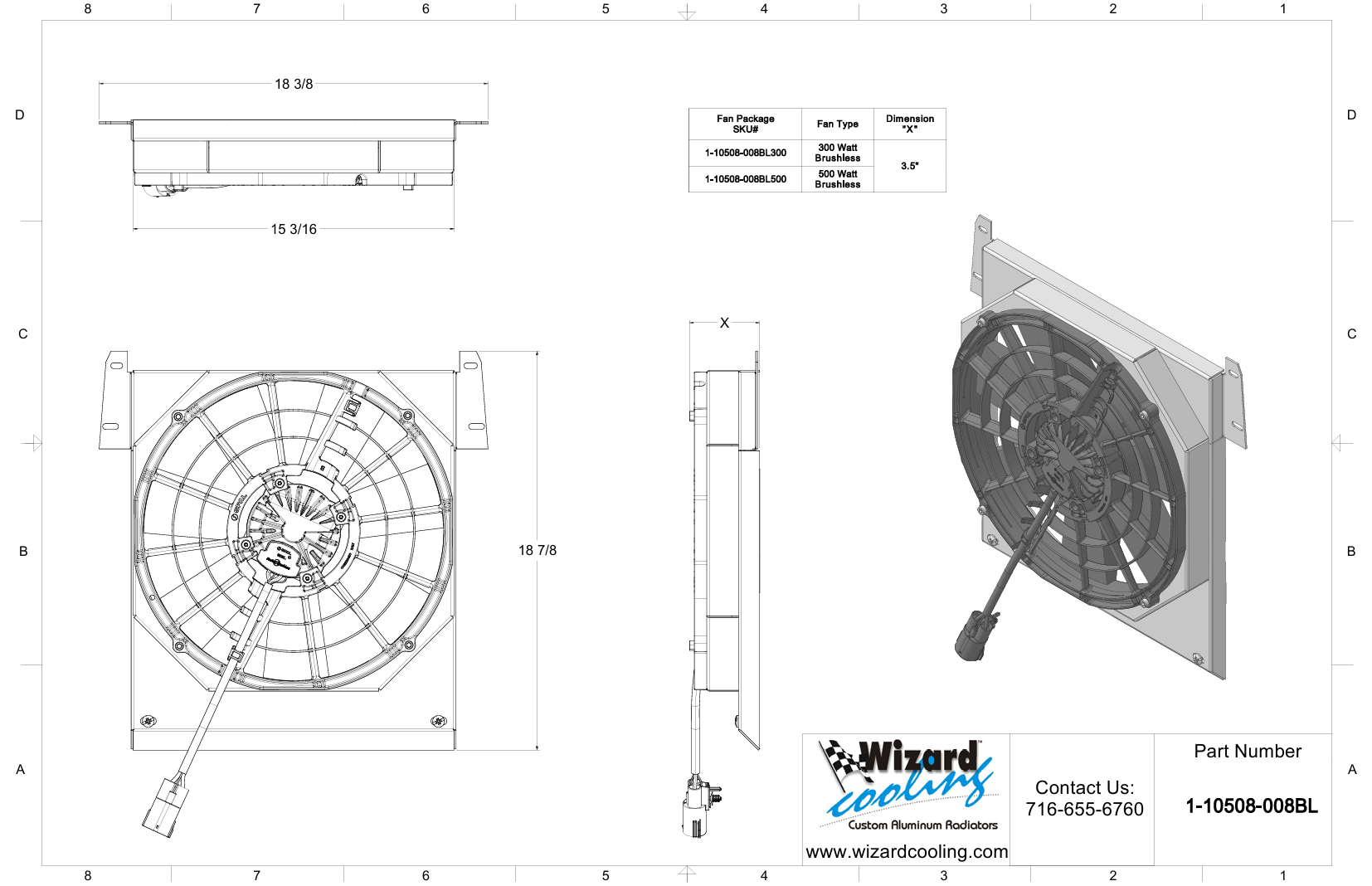 If you are considering adding this to your Wizard Cooling radiator, you will want to confirm how much room you have to work with. This fan package is 3.5" thick, once added to your radiator your total thickness of your radiator and fan package will be 6.5" thick.