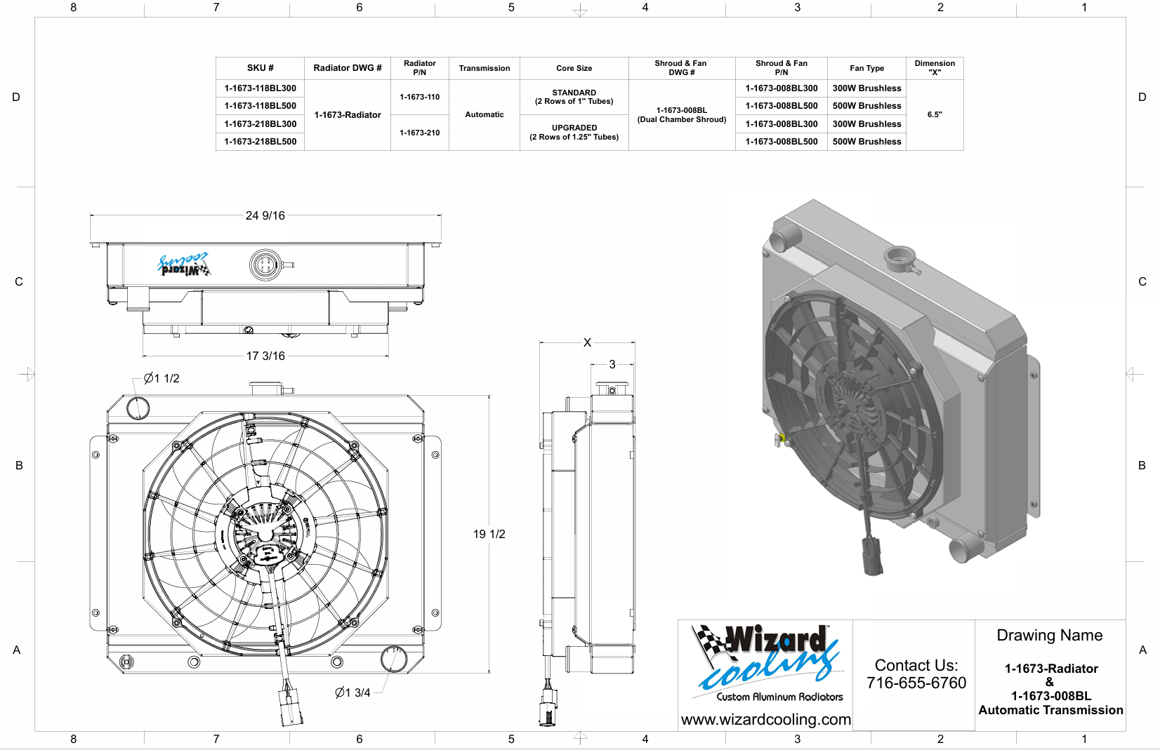 1962-1967 Chevrolet Nova / Chevy II Radiator AT & (SHROUD w/ BRUSHLESS FAN) - 1673-218BL300