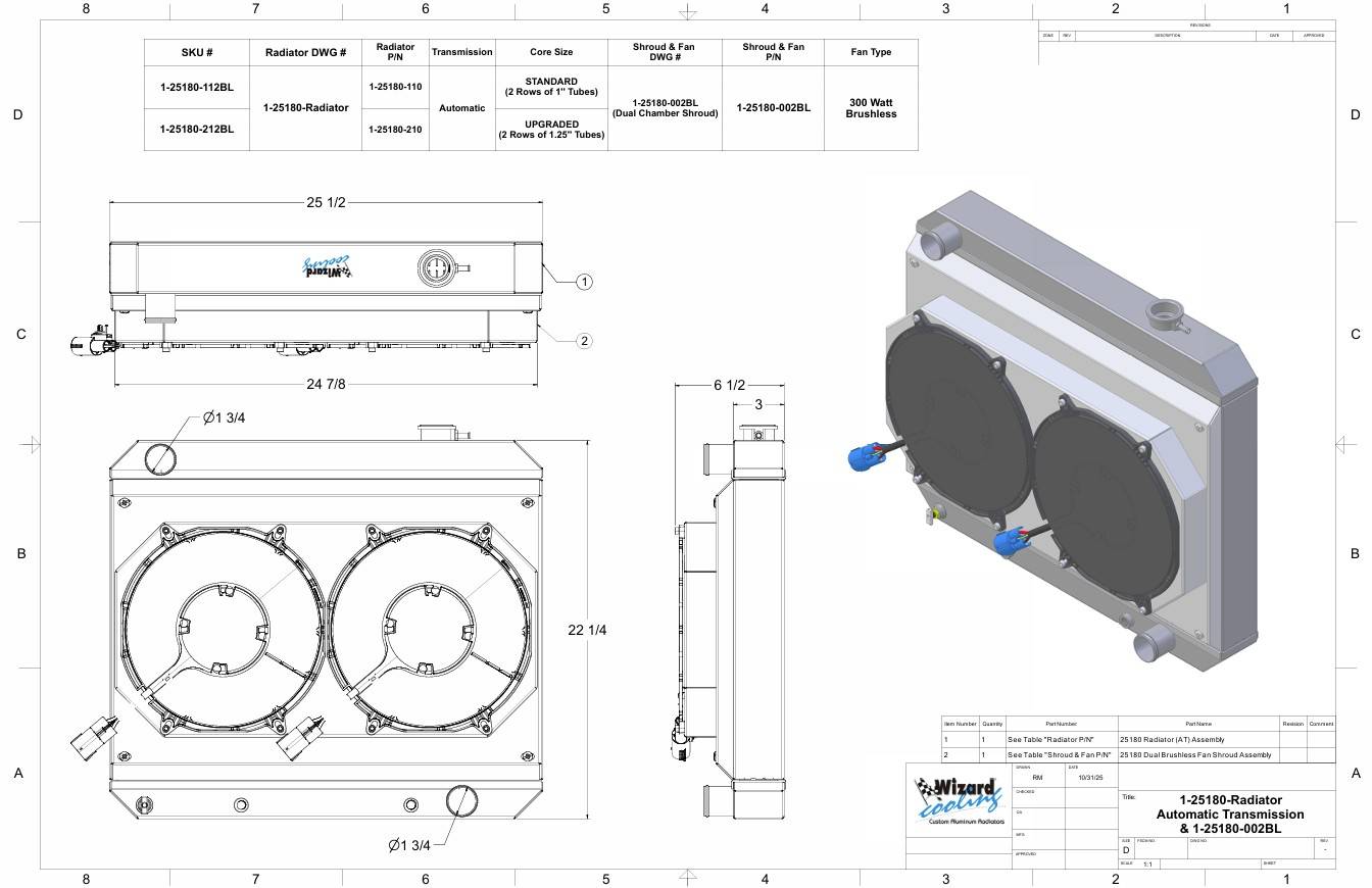 S/B, B/B, 17.5" Core w/out Factory AC, Automatic Transmission, 2.75” Core, Shroud & Brushless Fan(s),