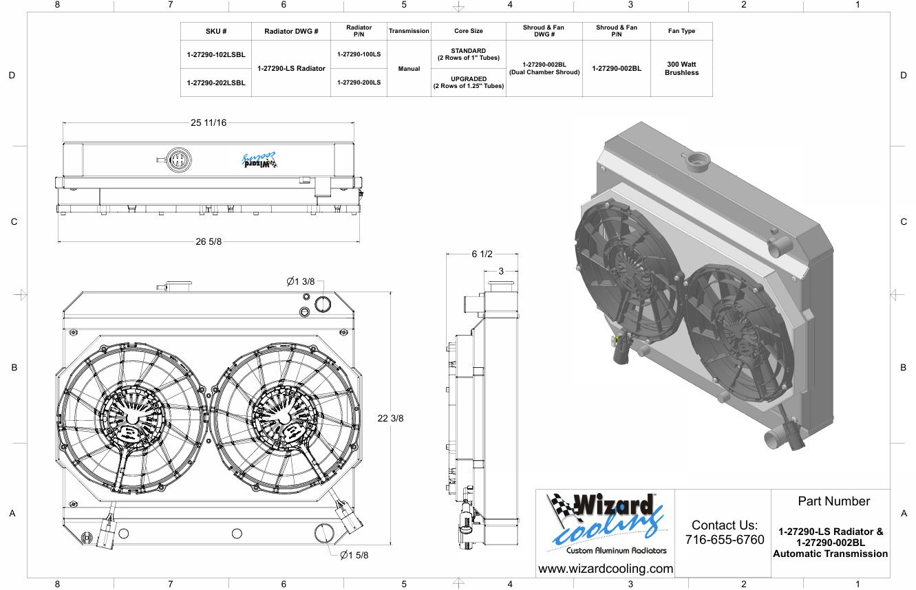LS Swap, 17.5" Core, Automatic Transmission, 2.75” Core,