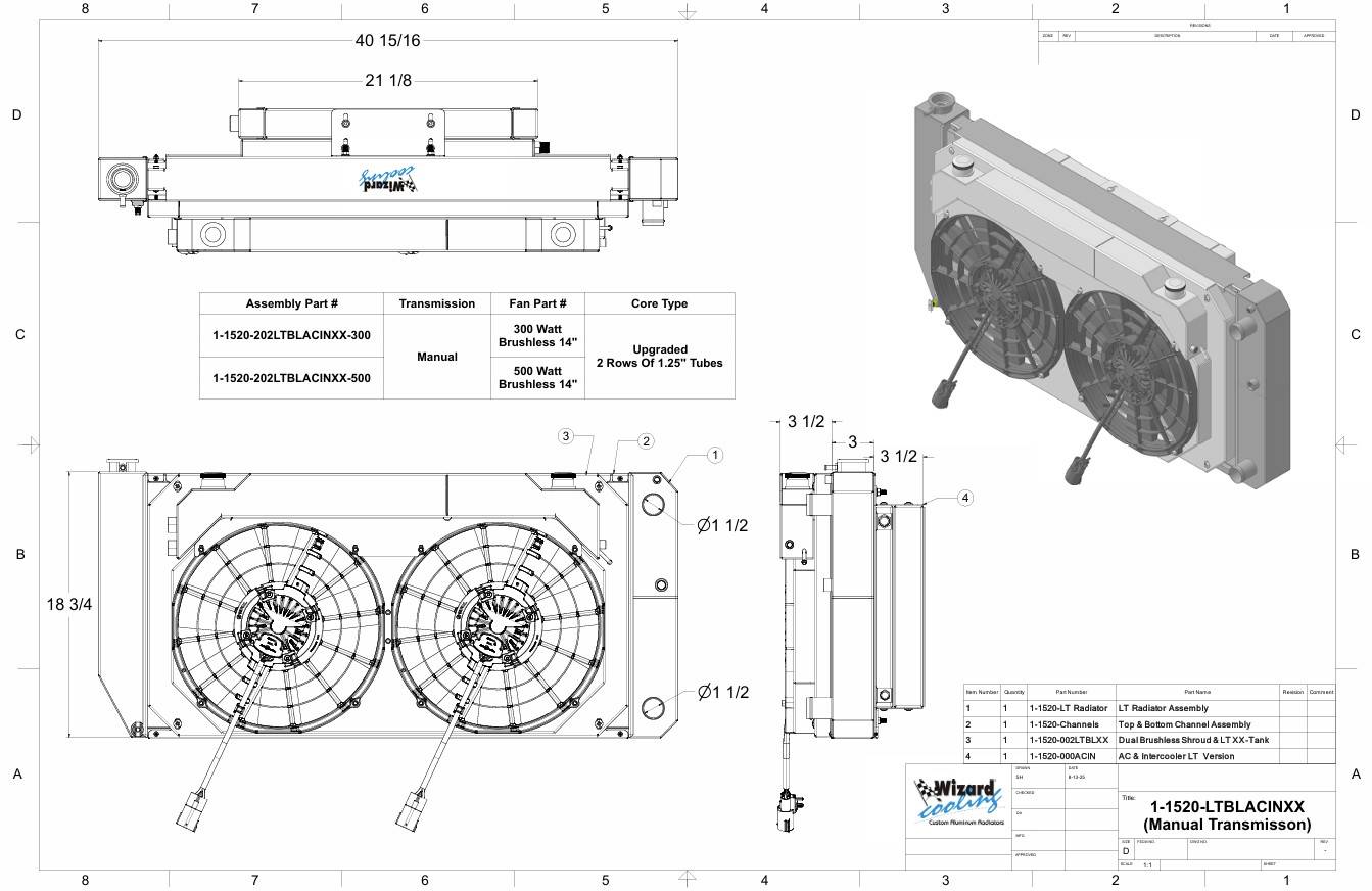 LT Swap (Supercharged), LT Swap, 34", Manual Transmission, 2.75” Core, Shroud & Brushless Fan(s), AC Condenser Tank(s)