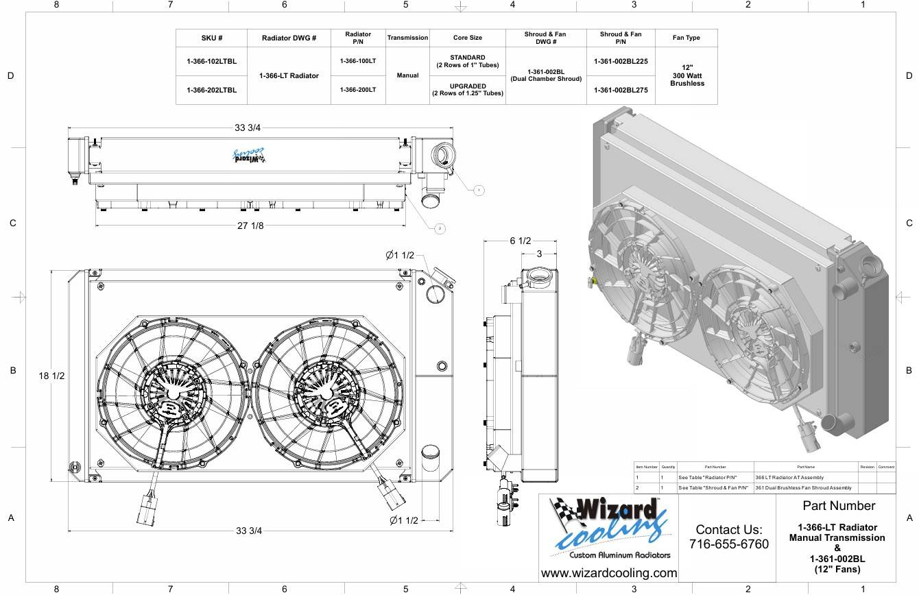 LT Swap, Manual Transmission, 2.75” Core, Shroud & 12" Brushless Fan(s)