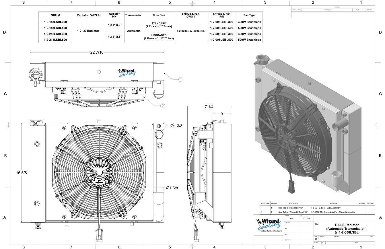 LS Swap, Automatic Transmission, 2.75” Core, Shroud & Brushless Fan