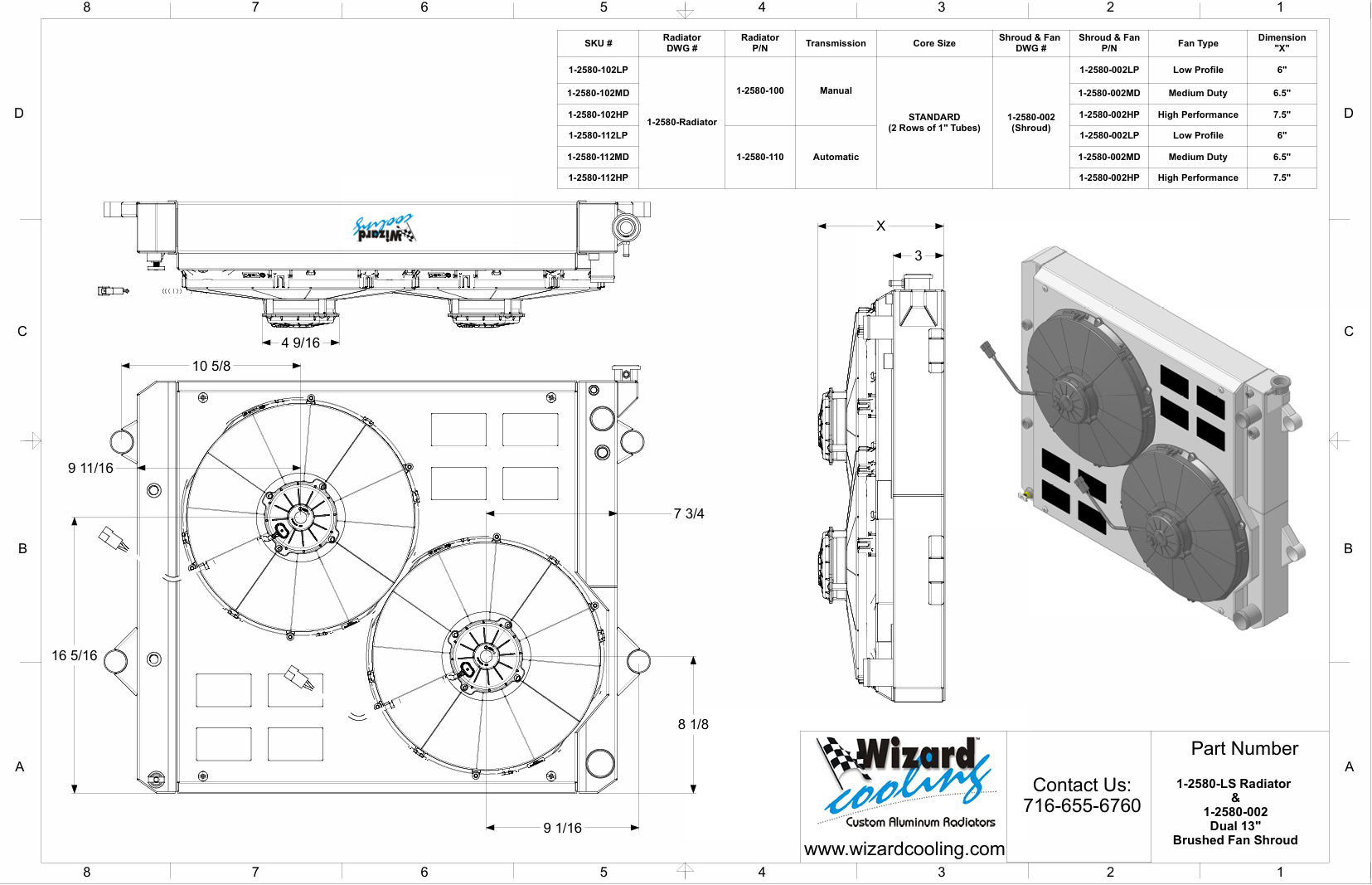 LS Swap, Automatic Transmission, 2.25” Core, Shroud & Medium Duty Fan(s)