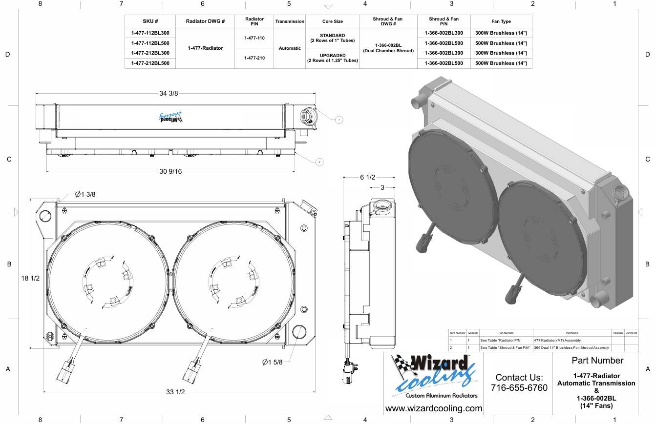 27.25” Core, Automatic Transmission, 2.75” Core, Shroud & 14" Brushless Fan(s), 300 watt