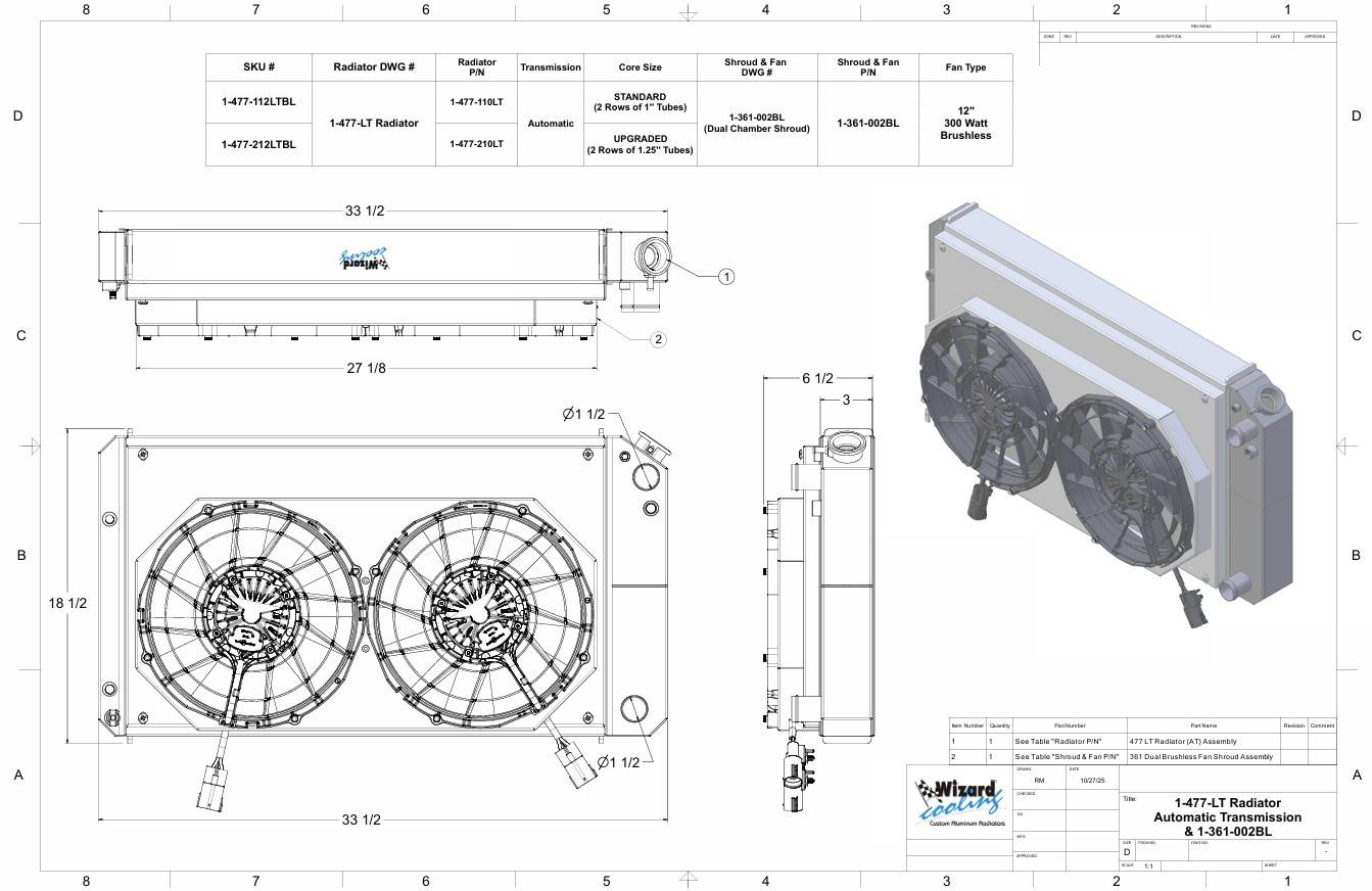 LT Swap, LT Swap (Supercharged), 27.25” Core, Automatic Transmission, 2.75” Core, Shroud & 12" Brushless Fan(s)