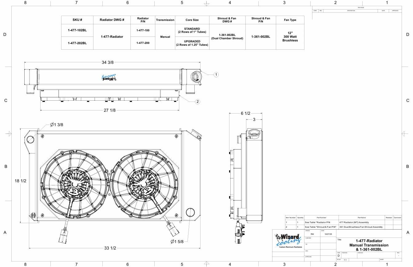27.25” Core, Manual Transmission, 2.25” Core, Shroud & 12" Brushless Fan(s)
