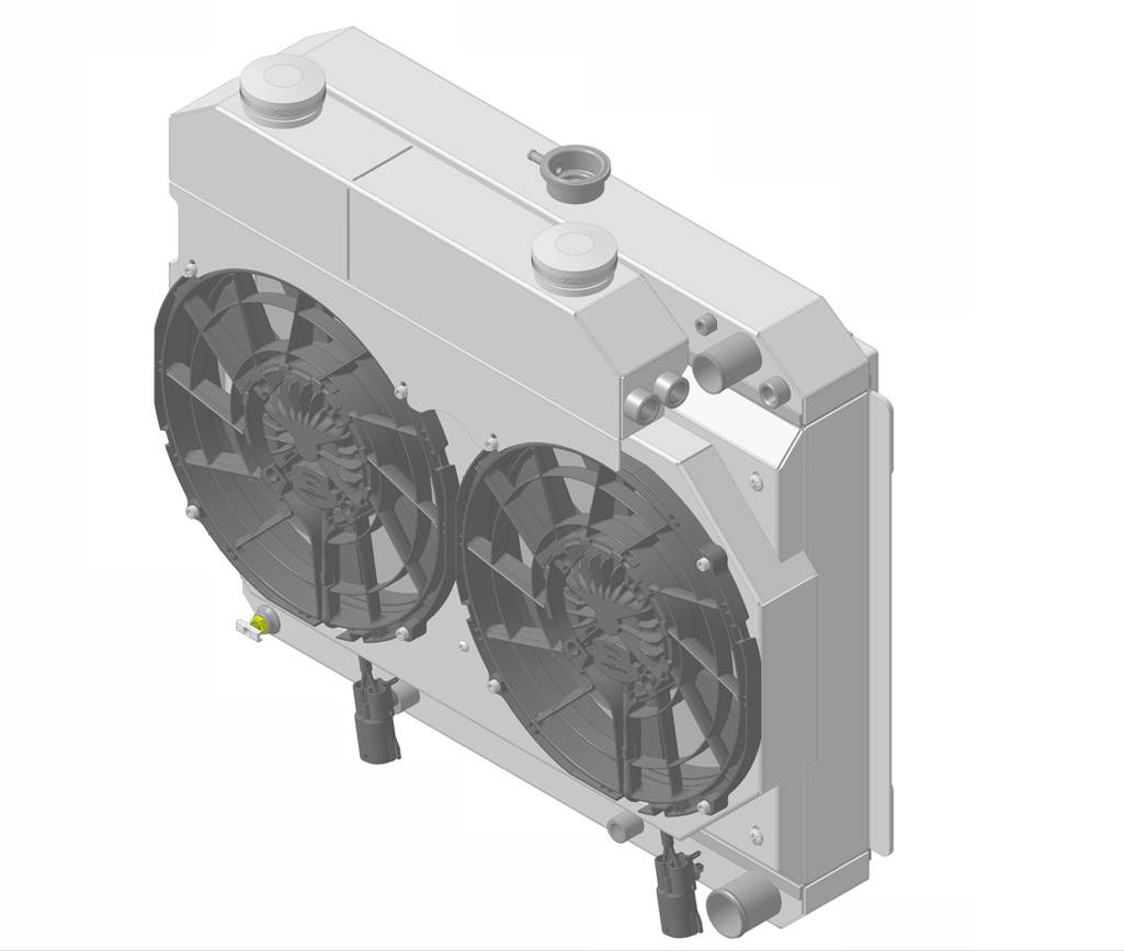 - High performance radiator with 2 rows of 1.25" tubes, with a core thickness of 2.75"