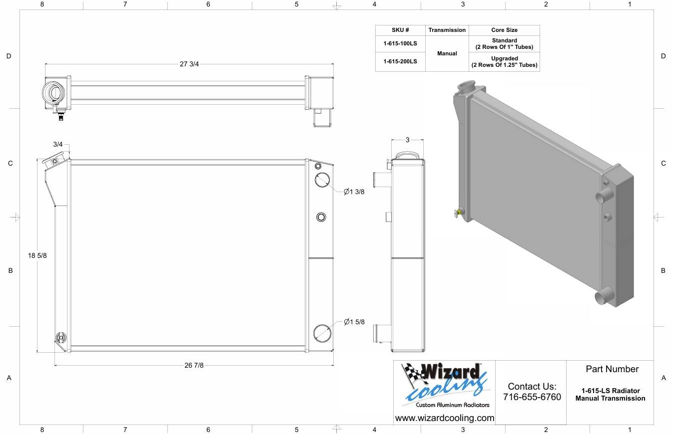 Wizard Cooling - 1966-1968 Chevrolet Corvette Aluminum Radiator (LS Swap) - 615-200LS